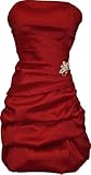 Strapless Taffeta Mini Prom Dress Bridesmaid w/ Pull-ups, Crystal Pin Junior Plus Size